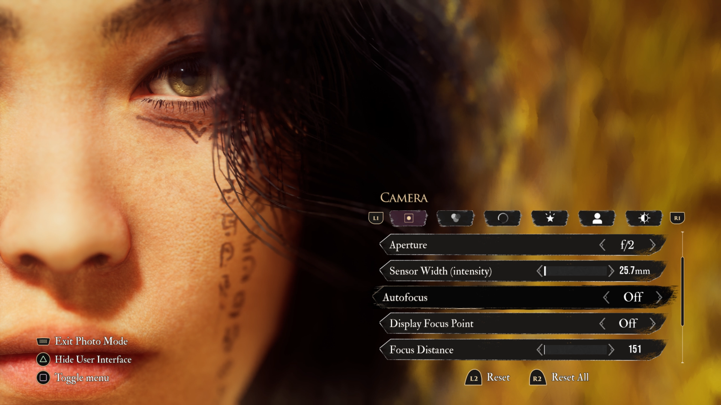 "We felt it was important to include anything that increases the “freedom” factor for players. It opens up countless possibilities every time someone enters photo mode: a very generous camera range to capture unseen details or create epic compositions, RGB curves control to edit and build your own color schemes, a strong custom lighting system to truly take ownership of a scene, and solid depth-of-field management.